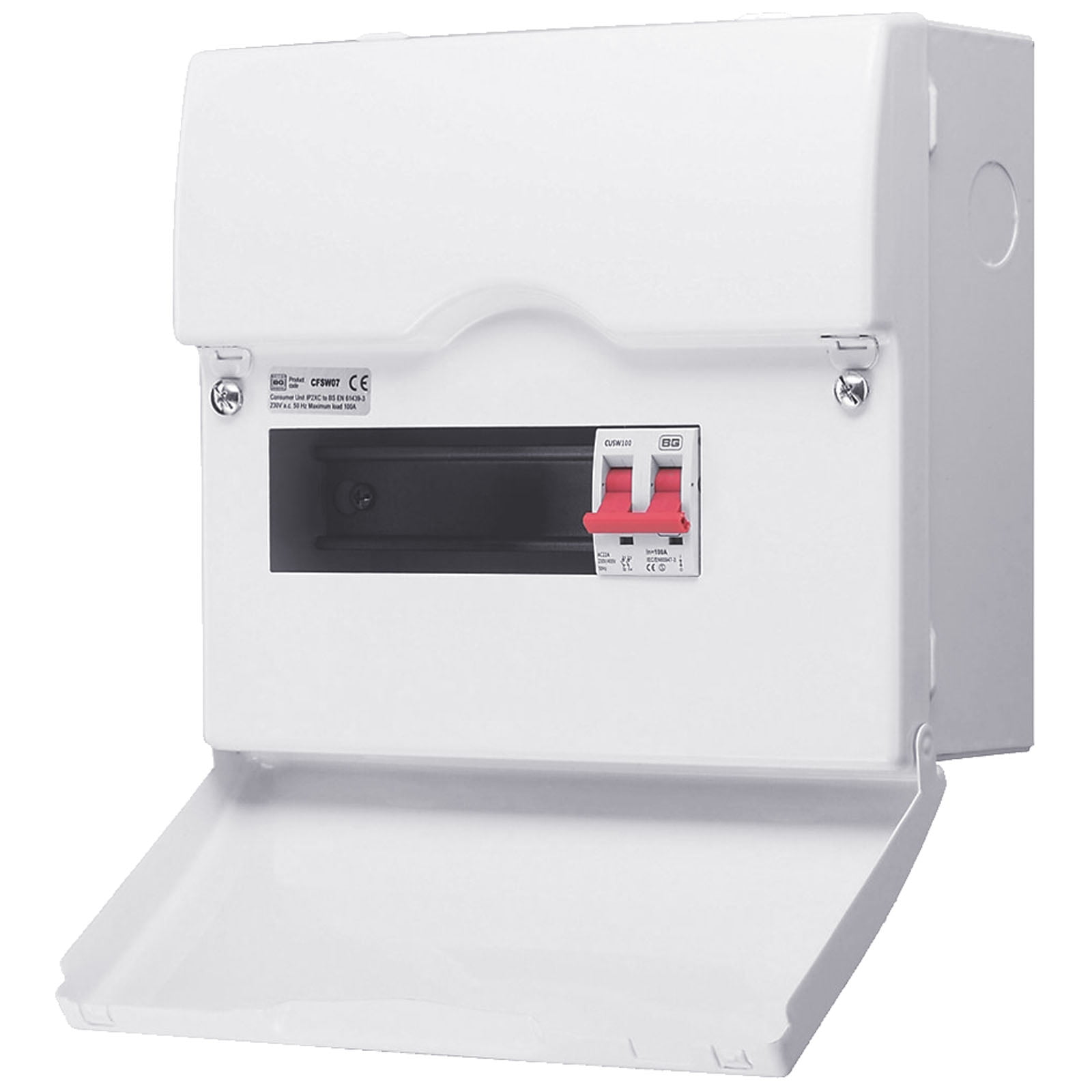 - Supplied with 100A Main Switch, busbar, label sheet, 2 cover blanks and instructions.