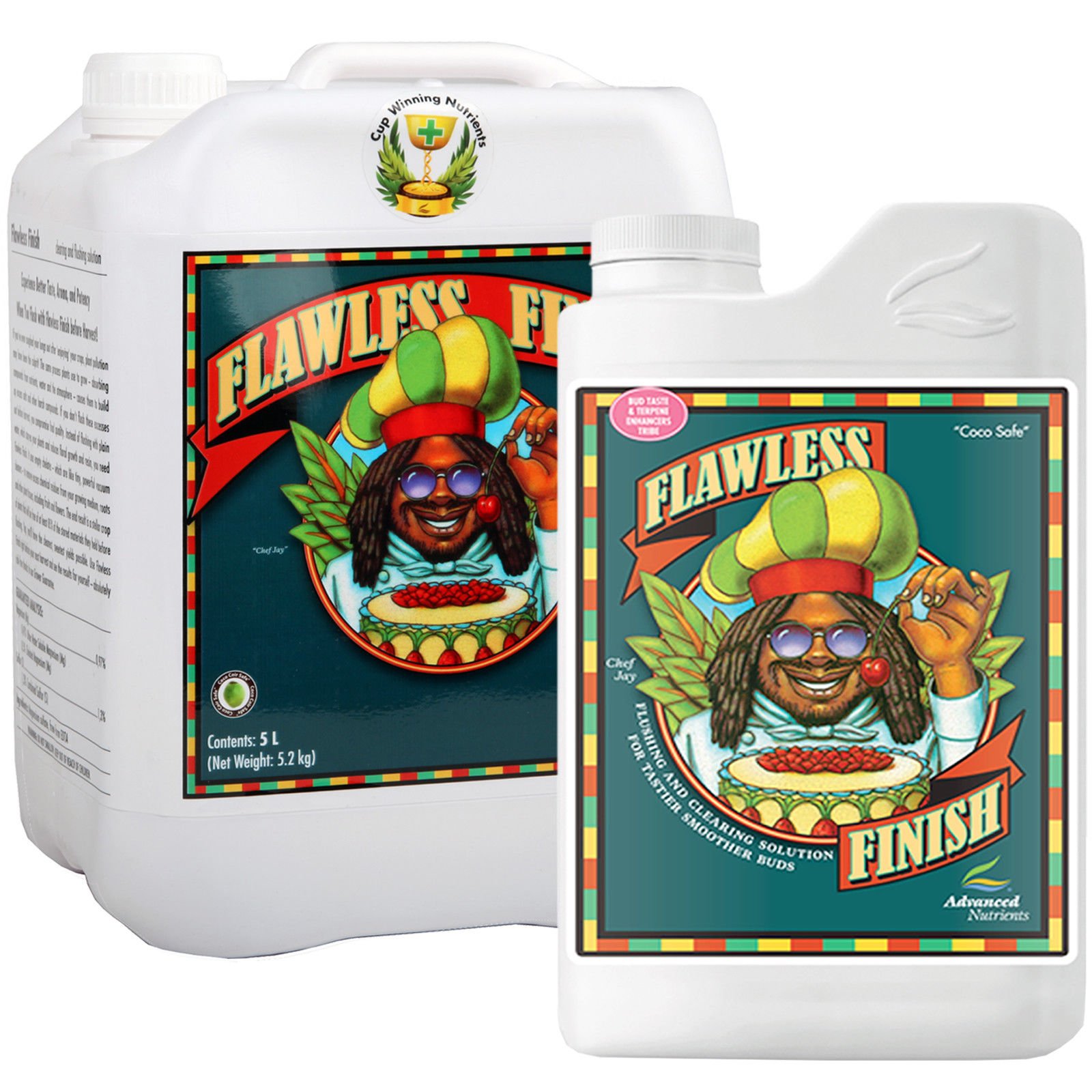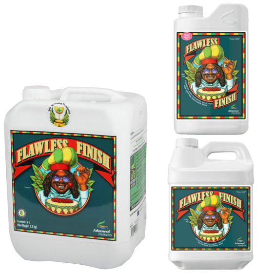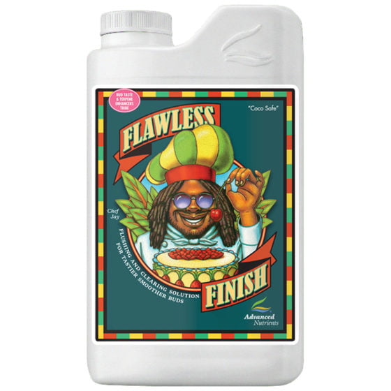 Advanced Nutrients Flawless Finish cleanses your crops just before harvest. As plants age, they can decrease in quality by accumulating excess nutrient salts and other substances, but by using Advanced Nutrients Flawless Finish, the results are crops purged of excess salts and other burdens without the use of chemicals and starving the crop of nutrients like other flushing methods. It can also be used as a mini-flush to return to a neutral root zone for re-balancing pH and making sure plants are not overfertilized. It does this with a unique blend of flushing agents and chelates; the chelates claw and hang onto undesirable compounds and purge them through the roots.