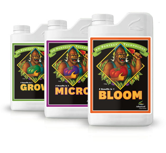 Note: Advanced Nutrients pH Perfect Bloom Grow Micro is a three-part nutrient.