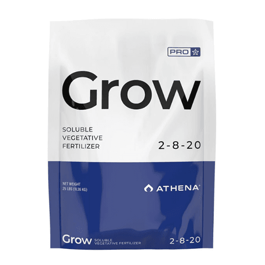 The vegetative growth stage demands well-rounded nutrition to establish strong roots and lush foliage. Athena Pro Grow is a balanced soluble fertiliser blend formulated for commercial cultivators to streamline irrigation. Use with Athena Pro Core for a complete and balanced recipe.