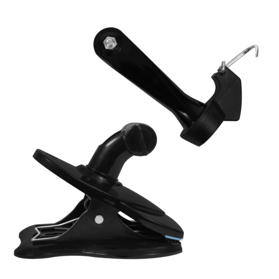 This fan comes with multiple clip attachments/bases. Base 1 is suitable for standing on flat surfaces, hanging from a suitable wall screw using the keyhole or to clip to a stable object such as a table/desk. Base 2 is a pole attachment for attaching the fan to vertical poles. This comes with a 16-19mm hook and 20-25mm hook to suit different pole thicknesses.