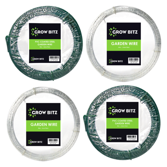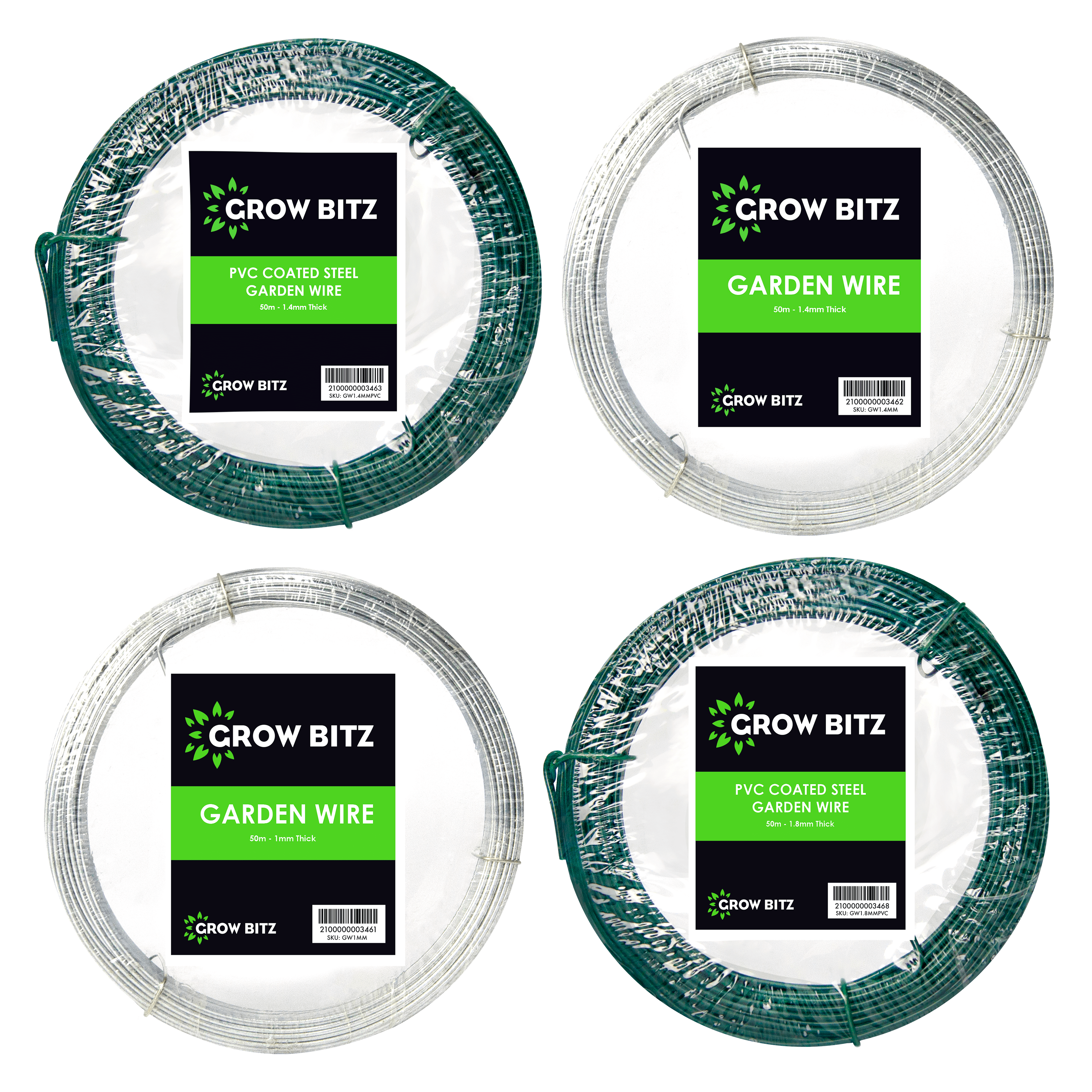 Grow Bitz Garden Wire keeps your plants growing the right way and trains growth. It is available in either galvanised or PVC coating and in the following options: