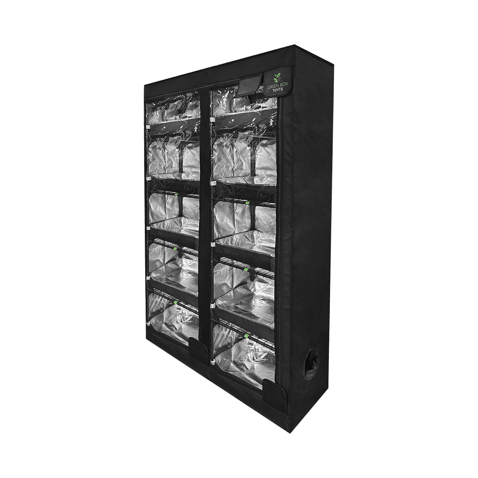 - 1 x GB Propagation Tent (140 x 50 x 200cm) – Our Propagation tents are perfect for seedlings, early veg & full life-cycle of short plants. They feature sturdy shelves with individual drip trays and shelf hangers as well as clear doors for easy viewing, without disturbing the temperature or humidity of the grow environment.