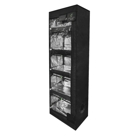 Our Propagation tents are perfect for seedlings, early veg & full life-cycle of short plants. They feature sturdy shelves with individual drip trays and shelf hangers as well as clear doors for easy viewing, without disturbing the temperature or humidity of the grow environment.