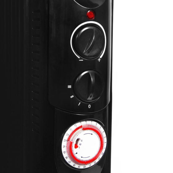 - Timer dial (2500w model) allows the heater to come on and off when needed