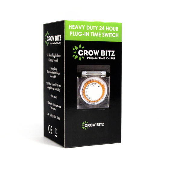 The Grow Bitz Heavy Duty Timer is a 24 hour Analogue Segmented Timer which is used to economically control grow equipment from fans and pumps to lighting contactor switches.