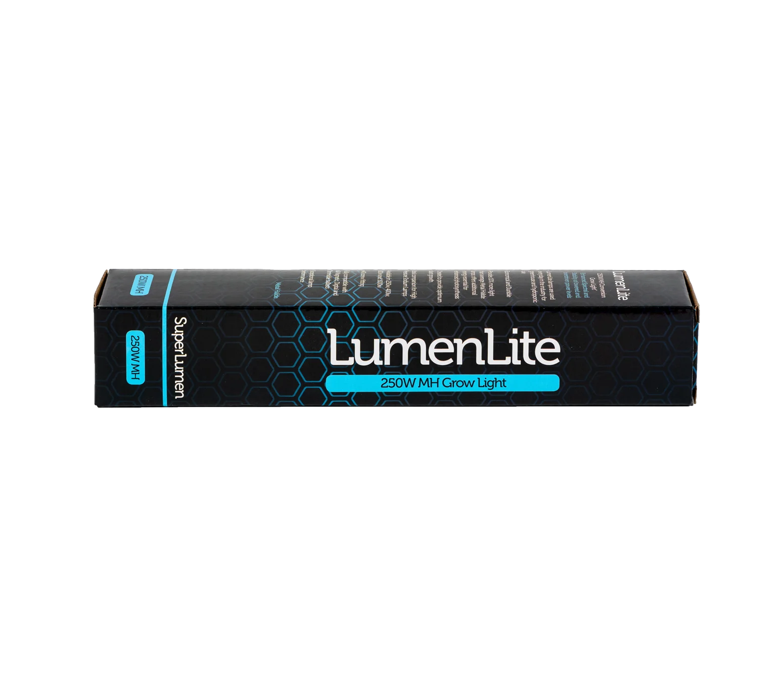 The Lumenlite 250w Metal Halide Lamp is a vegetative stage, growth spectrum lamp which has been optimised to run with an Adjusta-Watt Ballast. During the growth period plants much prefer the blue end of the light spectrum giving fast upward growth and dense,close internodes which helps greatly when moving towards the flowering cycle. The LumenLite 250w lamp works well as a supplementray lamp when combined with high pressure sodium (HPS) as well as a stand alone fixture for excellent vegetative growth.