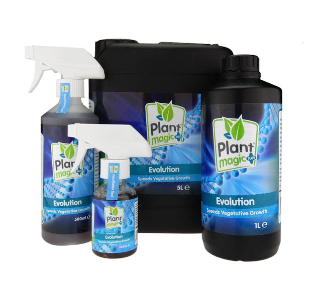 Plant Magic – Evolution is a foliar containing a wealth of plant health and growth accelerating ingredients. Evolution contains bio-stimulants, natural plant hormones, sugars, vitamins, trace elements, amino acids along with humic acids and fulvic acids. The bio-stimulants and natural plant hormones really kick a plant’s growth speed up a gear. The sugars provide lots of energy to power the growth spurt while the vitamins, trace elements and amino acids help to ensure that the plant has all the extra micro-nutrients it needs to produce the extra growth. The humic and fulvic acids help to very effectively deliver all the ingredients into the plant. A couple of days after spraying you will notice an amazing improvement in plant health and growth speed, with lateral growth greatly increased. Brilliant product!