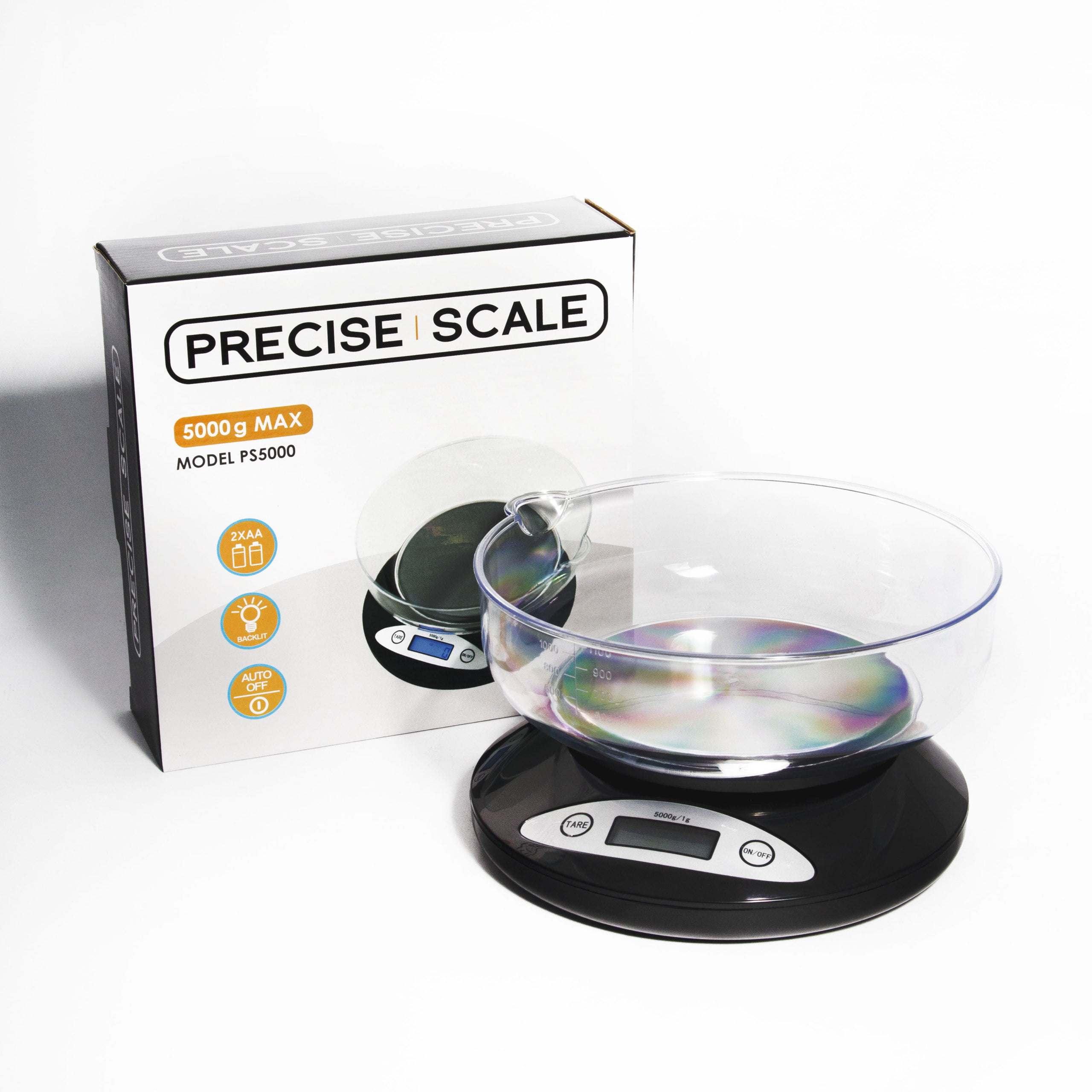 The Precise 5000g digital scales provide very large capacities which makes it ideal for the kitchen. A large capacity without a weighing bowl is fairly useless, so Precise has included a large 2-liter bowl with this scale! The bowl has a spout, so if your recipe includes liquids, they can easily be poured out with minimal mess. These scales also include 4 weighing modes with both overload and underload indications.