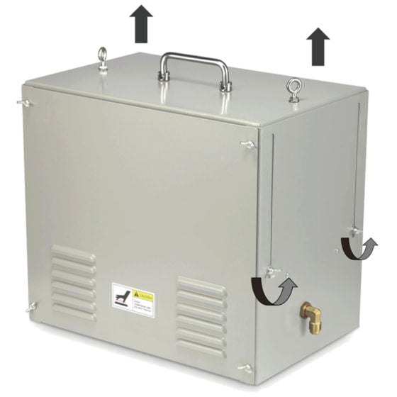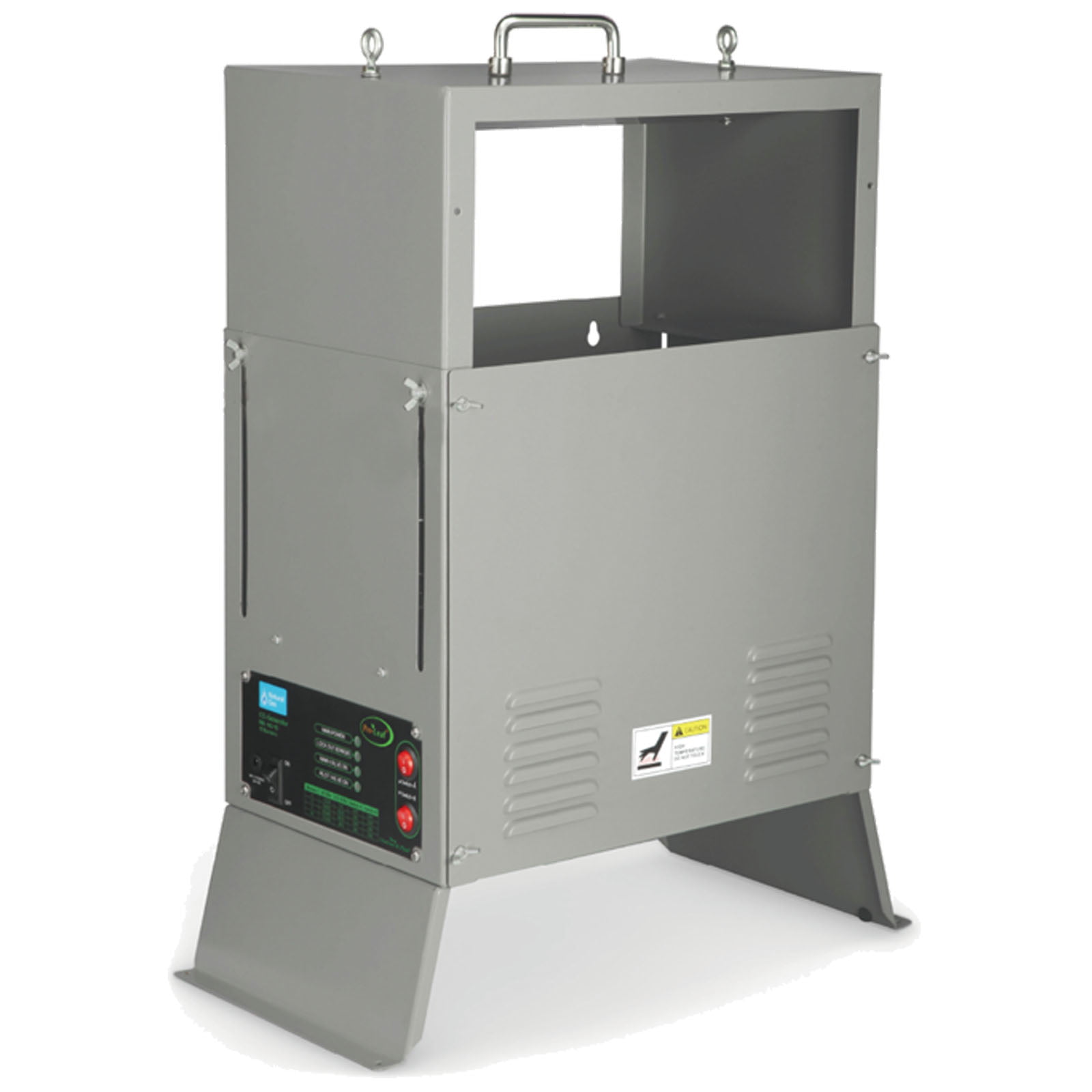 The burner is controlled using the Pro-Leaf controllers (sold separately). These generators can be setup for use on the floor with the included metal feet or, alternatively, suspended from the ceiling using the included hanging hardware kit.