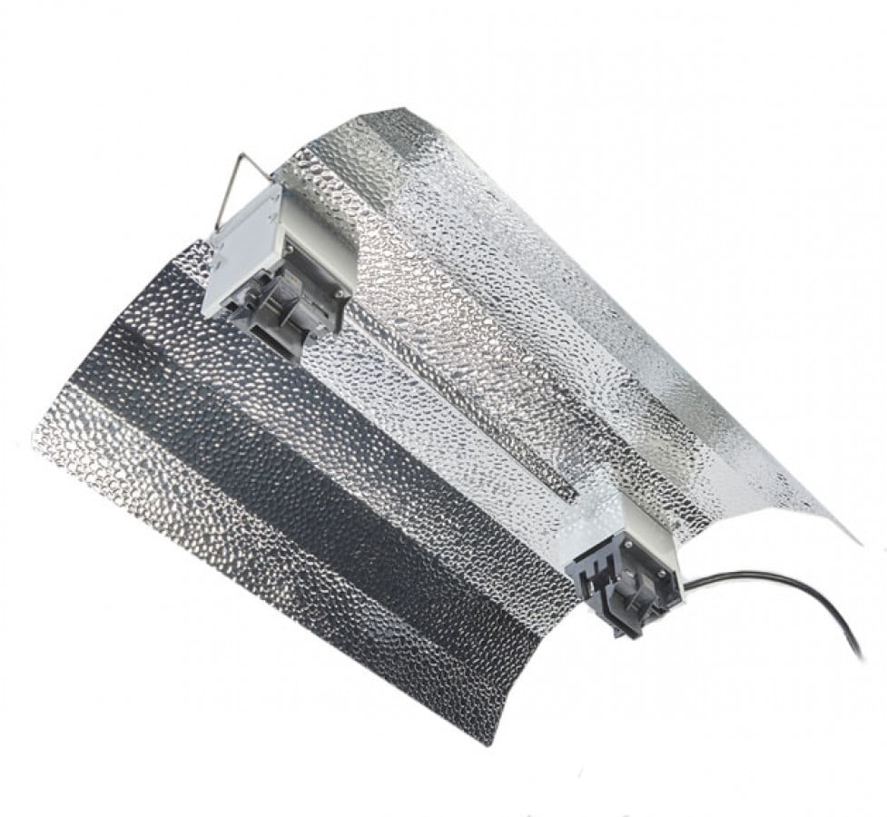 This is no ordinary Euro Reflector.It is equipped to house double ended (DE) bulbs. It’s officially certified as 95% reflective, with excellent diffusion levels, and is built to a very high standard, with a branded top plate and V-shaped hangers for attaching your rope ratchets or hangers. The lamp cord is also fully shielded, eliminating the chances of interference with radio or broadband equipment.