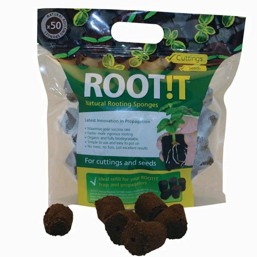 Root!t Natural Rooting Sponges are a clean, effective, easy alternative to traditional methods of propogation to help growers grow their own plants and vegetabes. They are strong, pliable, ready to use propogation plugs made from a mixture of peat and bark, bonded together with a plant derived biodegradable polymers.The structure allows for the the perfect micro enivornment to be made for seeds and seedlings by allowing for the ideal amount of water and air. It gives seedlings the best start once it has germinated, inoculated with micronutrients and beneficial bacteria to help them along. Ideal for use in the garden, in pots and baskets, at allotments, or in hydroponic systems.