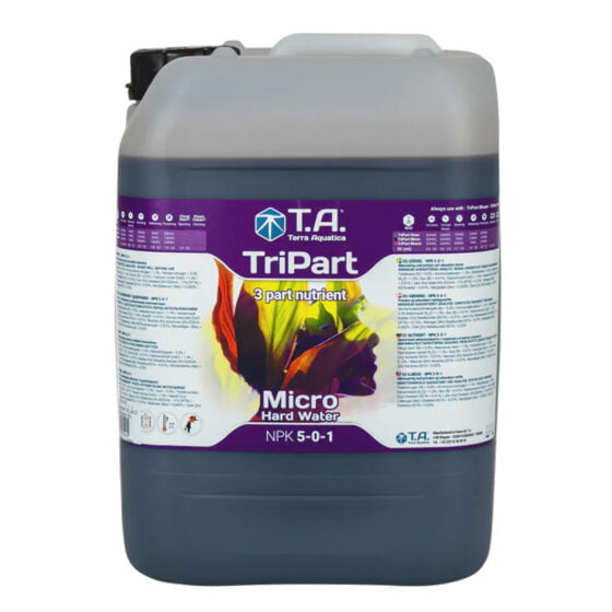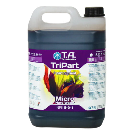 Available in Hard or Soft water composition, TriPart Micro is the foundation of the “building- block” system, providing micro and sub-micro nutrients and some complementary macro-nutrients. Use TriPart Micro as directed all the way through growth and bloom.