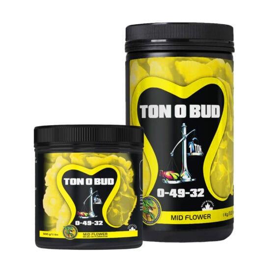Designed to pack bulk onto flowers and fruits during the middle stages of the flowering cycle, Ton O Bud offers concentrated P-K (phosphorus and potassium) addition, leading to higher end yields, drastically increased flower set, tighter and more compact flower density, all without compromising quality and flavour.