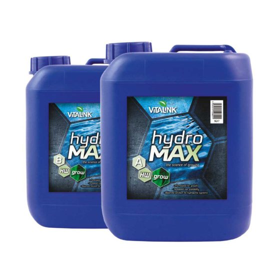 VitaLink Hydro MAX nutrients are highly-concentrated A and B formulations supplied in both Grow and Bloom variants, to supply everything your plants need from transplant to harvest. They have a strong reputation with growers for promoting vigorous, healthy plant growth and achieving maximum yields.
